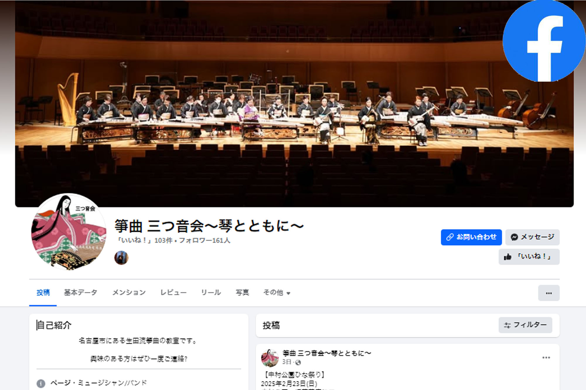 この地ならではの名古屋系地歌の古典曲伝承にも力を入れながら、時代にそったアニメ曲など身近に箏を楽しんでもらえる楽曲をYouTube で配信。また、Facebook にて日々の活動をご覧いただけます。