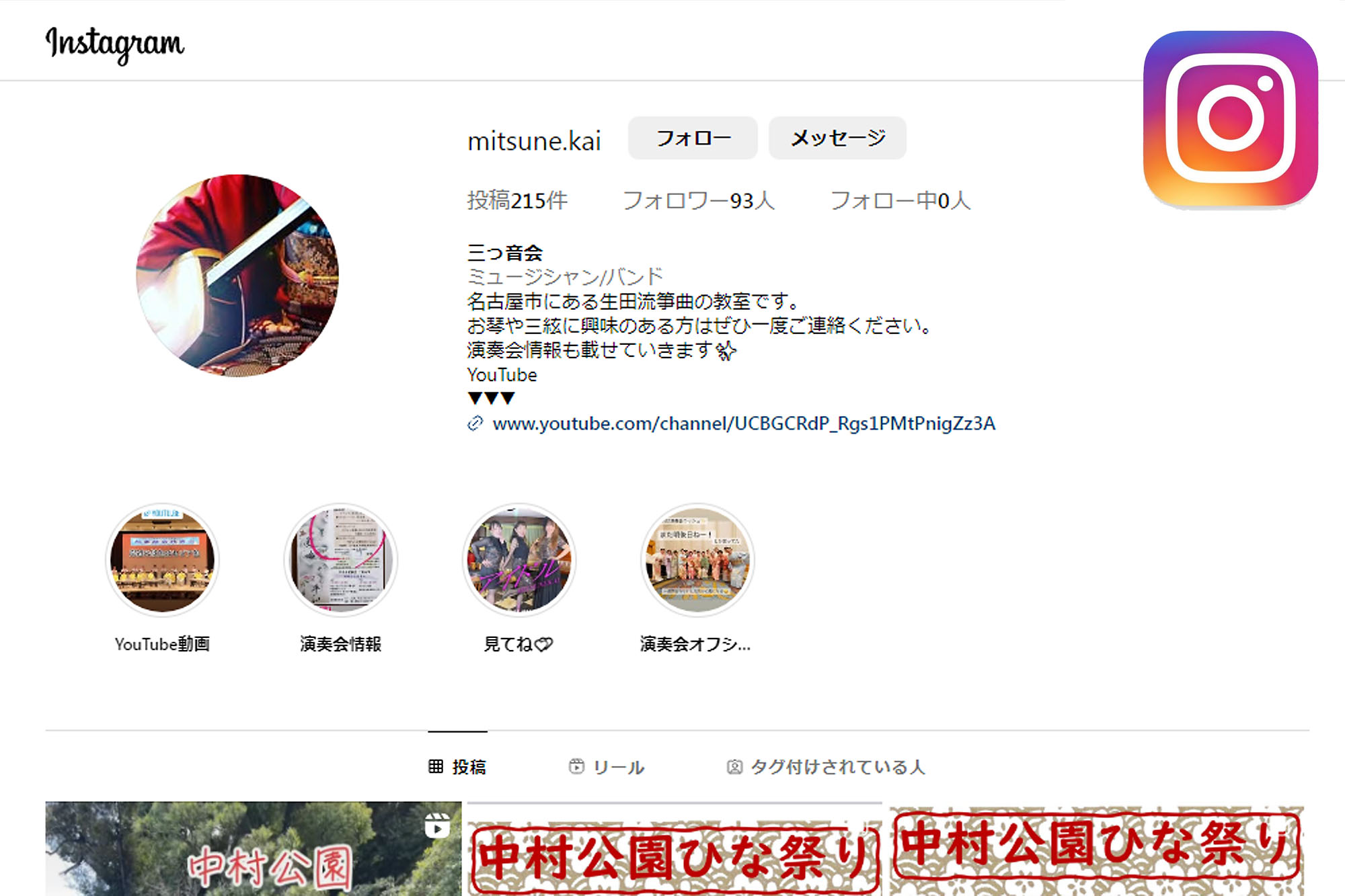 生田流箏曲三っ音会(みつねかい)は日本の伝承楽器である箏・三絃・尺八等の演奏技術の普及と、会員の技術向上を目指した